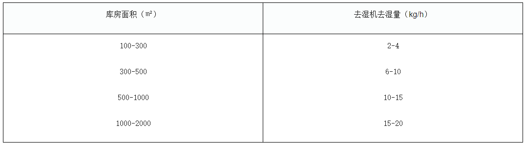 濕度調(diào)節(jié):我們在選購去濕機(jī)時,要根據(jù)室外空氣濕度、庫內(nèi)要求達(dá)到的標(biāo)準(zhǔn)濕度、庫房建筑結(jié)構(gòu)、門窗大小及工作人員情況等因素綜合考慮。去濕機(jī)容量的選擇可以參考下表: